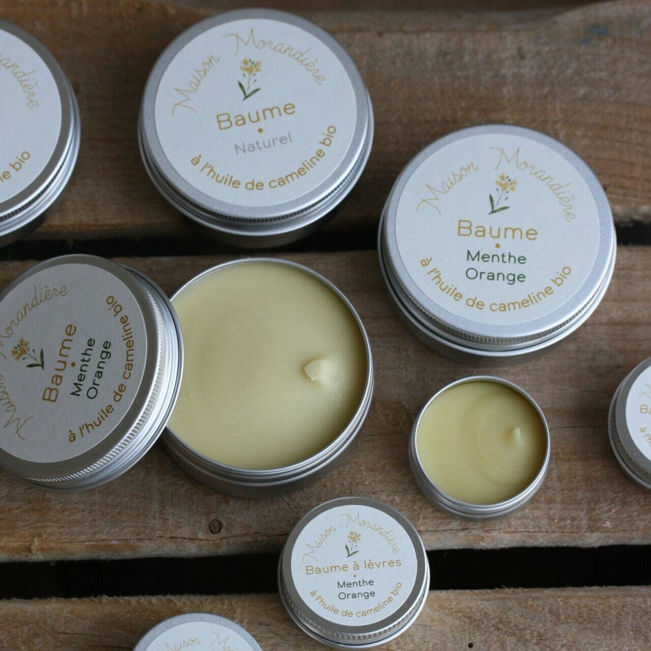 Baume réparateur et nourrissant enrichi avec l’huile de cameline bio cultivée et produite à la ferme.